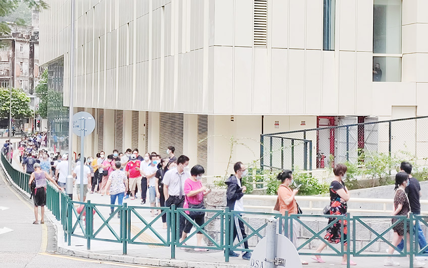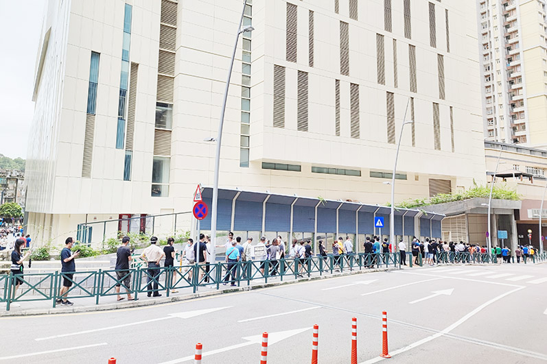 其中在理工大學核檢站,現場所見,工作人員要求入站前必須出示快速抗原檢測結果,部分排隊人士因未能出示而離場;在綜藝館核檢站,人龍排到大賽車博物館正門後方。