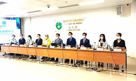 新型冠狀病毒感染應變協調中心昨日舉行記者會,衛生局局長羅奕龍、教青局局長龔志明、社工局局長韓衛、經科局局長戴建業、交通事務局局長林衍新、市政署副主席柯嵐、衛生局疾病預防及控制中心傳染病防控處處長梁亦好等分別介紹了本澳及鄰近地區整體防疫情況。