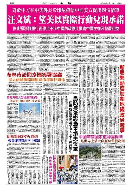 對於中方在中美外長於印尼會晤中向美方提出四份清單 汪文斌:望美以實際行動兌現承諾 停止遏制打壓行徑停止干涉中國內政停止損害中國主權及發展利益