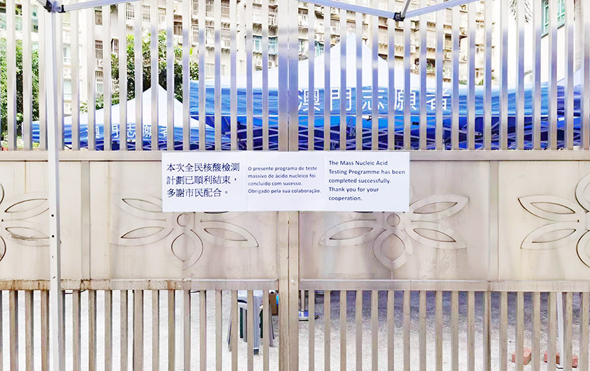 從第九輪全民核檢開始,調整部份核檢站的開放時間,另流動核酸採樣車方面,除凱泉灣巴士總站、路環中葡學校、黑沙公園、海洋花園衛生中心、澳門大學附屬應用學校外,繼續增加兩輛流動核酸採樣車到指定地區。新增兩輛流動核酸採樣車的停站安排:第一輛停泊在聖公會中學(澳門)(氹仔海灣圍);第一輛停泊在培華中學附屬小學暨幼稚園(氹仔米利奧街)。