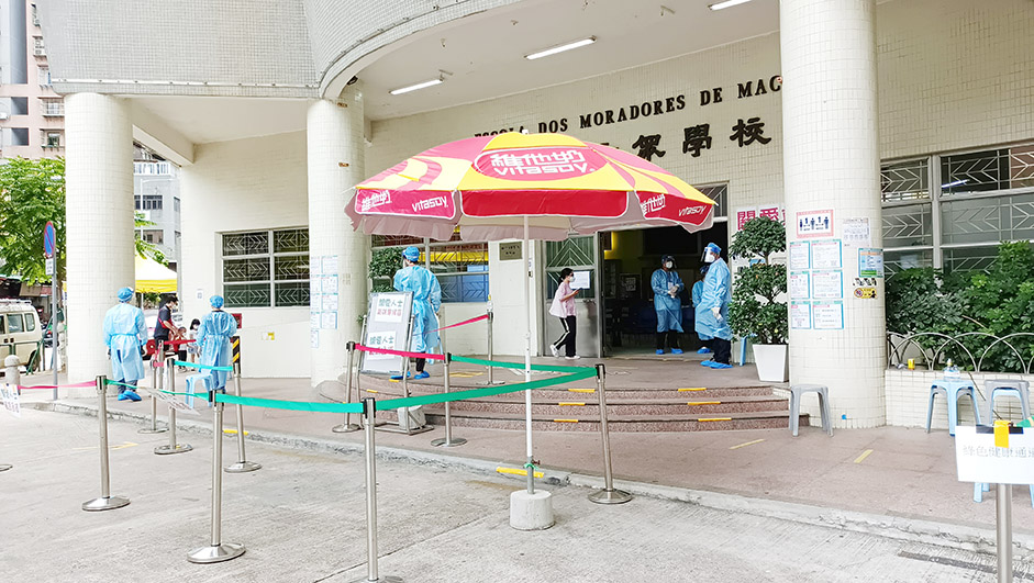第九輪全民核檢昨日傍晚六時結束,第十輪全民核酸今明兩日進行。昨日早上 九時許,本澳多個核檢站人流不多,基本不用排隊就可入站,秩序良好。至昨日下午,望厦體育館核檢站人流相對較多,門外有排隊情况,現場設置遮陽篷;設有關愛站的慈幼中學核檢站,人流有序暢順;聖若瑟教區中學第二校核檢站,核檢人士進站前要使用酒精搓手液消毒雙手;而停靠在凱泉灣總站的流動核酸採樣車,昨天早上十時約有二十人輪候,秩序良好。