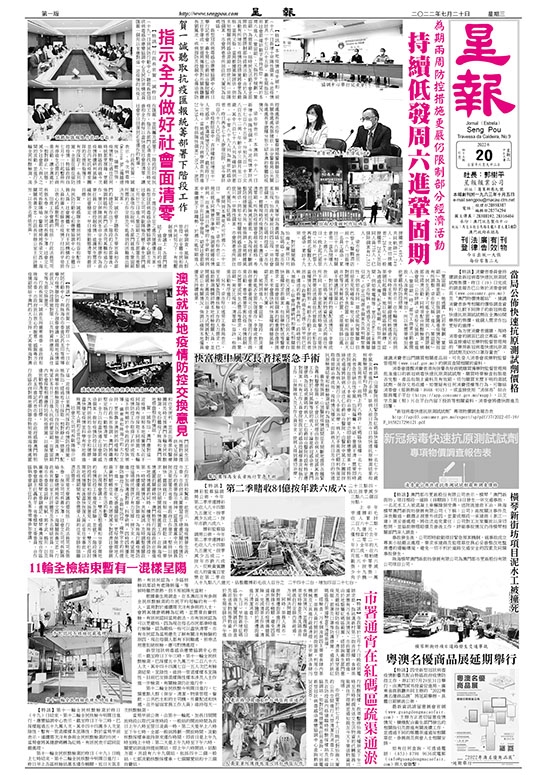 【特訊】行政長官賀一誠昨日(十九)日到民防行動中心,聽取新型冠狀病毒感染應變協調中心及民防架構成員匯報一個月以來應對這一波疫情的抗疫工作匯報,並統籌及部署下一階段的防疫抗疫工作,指示各部門必須查找不足及時完善和全力做好以盡快達至社會面清零,讓社會早日回復到正常運作的軌道。