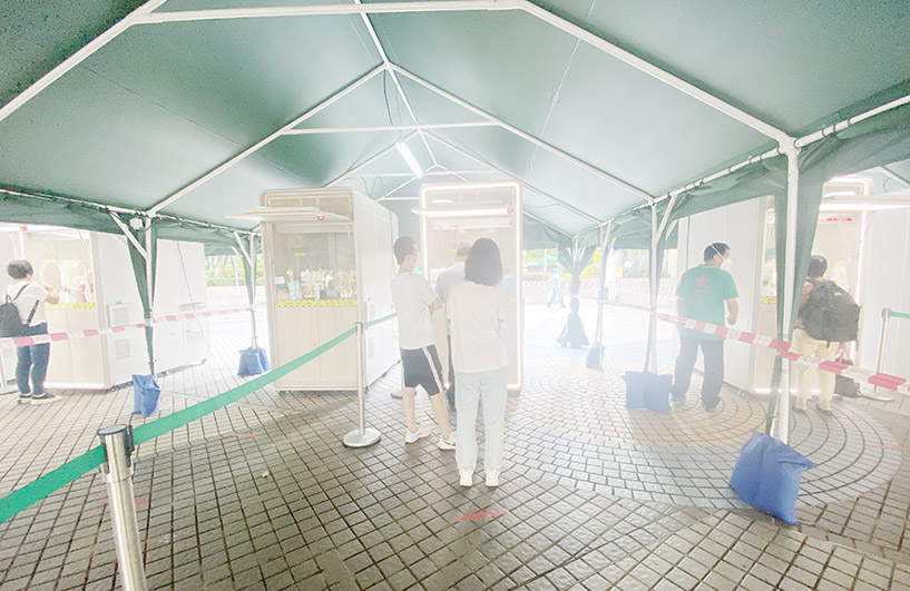 祐漢街市公園新設的戶外核酸檢測站昨日(二十五日)起開放使用,昨日早上陸續有市民到場核檢。據了解,現場的核檢流程,入口處有工作人員檢查到場市民的健康碼,其後有另一名工作人員掃描候檢人士的健康碼登記及核對身分證資料,無需再列印條碼貼紙,便可到採樣亭前採樣,整個過程在數分鐘內完成,現場同時設有關愛通道。