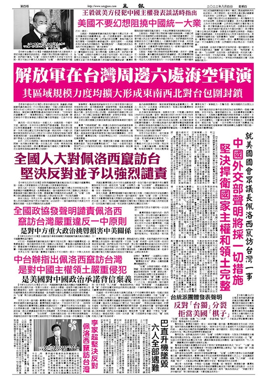 全國政協發聲明譴責佩洛西 竄訪台灣嚴重違反一中原則 是對中方重大政治挑釁損害中美關係