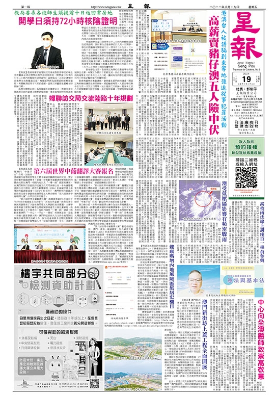 跨境學生方面,教青局正向學校收集新學年的跨境學生名單,有關工作將於下星期完成,居住在珠海和中山的跨境學生可於本月二十九日起,攜同有效的學生證到珠海市內六所指定醫院進行免費核檢。