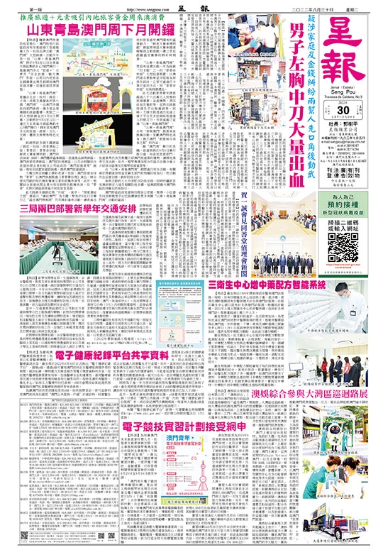 【特訊】隨着澳門恢復防疫常態化,澳門特別行政區政府有序重啟線下旅遊推廣工作,包括品牌活動“澳門周”大型路展。活動今年第一站“山東‧青島澳門周”將於9月8至12日在青島市南區奧帆中心5號門舉行,推廣澳門多元“旅遊+”元素及“安全宜遊.魅力澳門”形象,以吸引內地旅客在國慶黃金周及假期到澳門旅遊消費,促進旅遊經濟復甦。