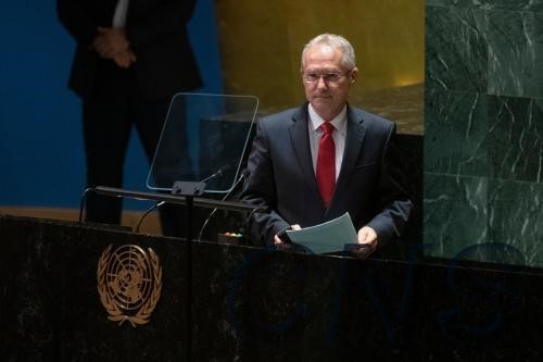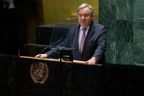 聯合國秘書長古特雷斯在會上發表講話說,在我們推進工作時,我們面對的是一個處於危險中的世界。我們需要團結起來應對挑戰,而聯大展示了希望和潛力。全世界都期待聯大成員利用可供使用的工俱進行談判、達成共識並形成解決方案。我相信第77屆聯大是一個轉變的時刻。