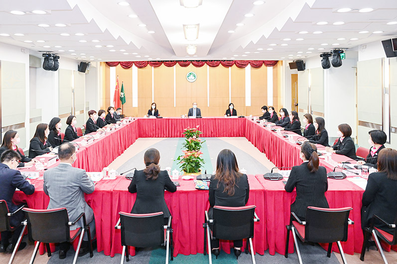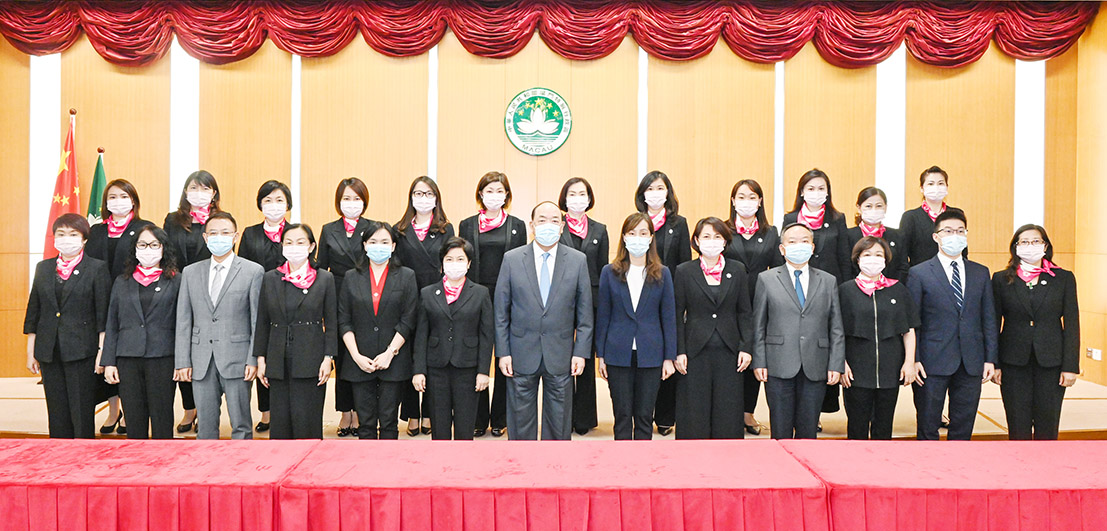 出席會見的還包括行政長官辦公室主任許麗芳、政策研究和區域發展局局長張作文等,以及澳門婦女聯合總會多名領導層成員。