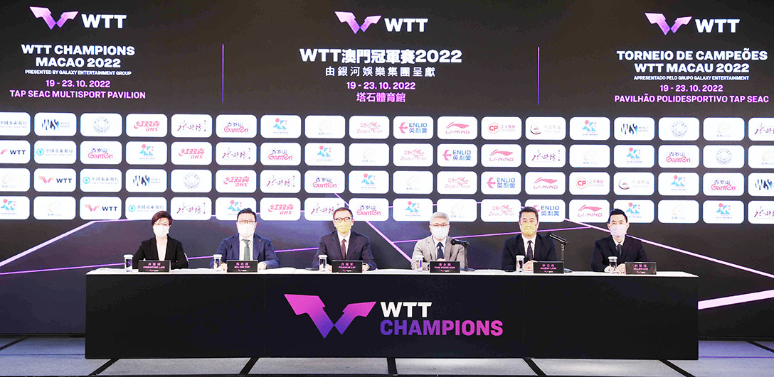 「WTT 澳門冠軍賽 2022 ─ 由銀河娛樂集團呈獻」將於2022年10月19日至23日在塔石體育館舉行,是次賽事將雲集世界排名前列的頂尖乒乓球男、女子運動員各32名,參加男子單打及女子單打兩個項目,初步參賽名單包括:國家隊樊振東、馬龍、孫穎莎、陳夢,日本隊張本智和、伊藤美誠,瑞典的莫雷加德、巴西的卡爾德拉諾、波多黎各的阿德里娜.迪亞茲等等。賽事日程方面,首兩天(10月19日及20日)將進行各項目的32強對壘;10月21日將進行各項目的16強賽事;10月22日將上演8強及4強賽事,而男子及女子單打的決賽將於10月23日舉行。