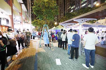另外,多個核檢站入夜後開始人流增多,前澳門逸園賽狗場、黑沙環青年活動中心、氹仔濠景花園等多個核檢站外都排起長龍,部份市民配戴KN95口罩,大多未有維持1米社交距離。