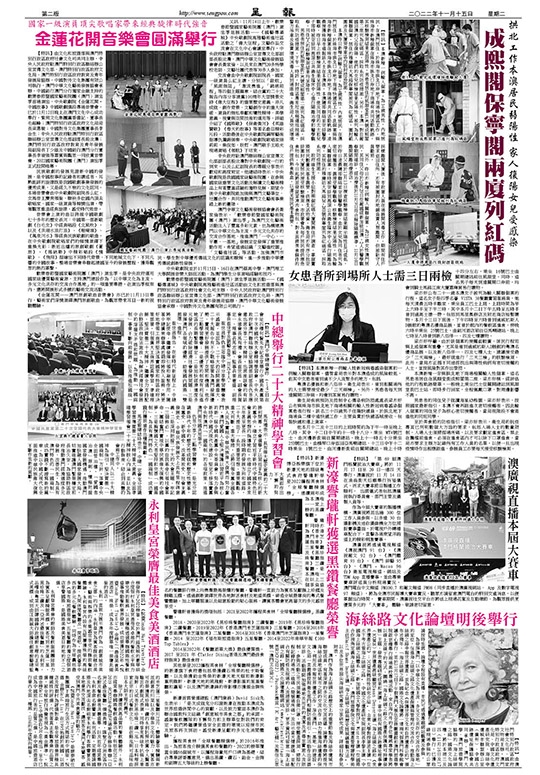 【特訊】由文化和旅遊部與澳門特別行政區政府社會文化司共同主辦,中央人民政府駐澳門特別行政區聯絡辦公室宣傳文化部、澳門特別行政區政府文化局、澳門特別行政區政府教育及青年發展局協辦,中國對外文化集團有限公司執行,澳門中華文化藝術發展協會承辦,中國銀行澳門分行獨家金融支持的歡樂春節暨國家藝術院團(澳門)演出季首場演出,中央歌劇院《金蓮花開‧中國故事》中國歌劇選段專場音樂會,已於11月12日晚上在澳門文化中心成功舉行。紫荊文化集團黨委書記、董事長毛超峰;澳門特別行政區政府文化局局長梁惠敏;中國對外文化集團董事長李金生;中央人民政府駐澳門特別行政區聯絡辦公室宣傳文化部副部長殷汝濤;澳門特別行政區政府教育及青年發展局副局長丁少雄及中國銀行澳門分行董事長李瑞強等嘉賓與觀眾一同欣賞音樂會,2022國家藝術院團(澳門)演出季正式拉開帷幕。