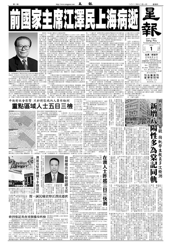 新型冠狀病毒感染應變協調中心表示,本澳昨日再新增的輸入關聯確診個案,其中一名患者為六十二歲女性,澳門居民,兼職廚工及校工,與丈夫同住在哪吒廟斜巷十二號宏順大廈。昨日早上自行作快速抗原測試結果呈陽性,被送往仁伯爵綜合醫院特別急診作核酸檢測,結果也呈陽性。患者近期沒有外遊史,但與十一月二十八日公佈的核酸檢測陽性的士司機有共同活動軌跡,暫列輸入關聯確診個案。