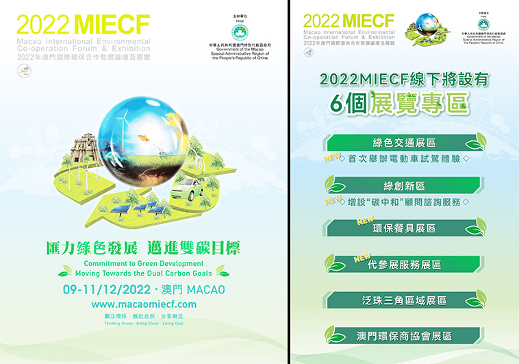 由澳門特別行政區政府主辦2022MIECF,將於12月9至11日假澳門威尼斯人金光會展舉行,主題為「匯力綠色發展 邁進雙碳目標」。