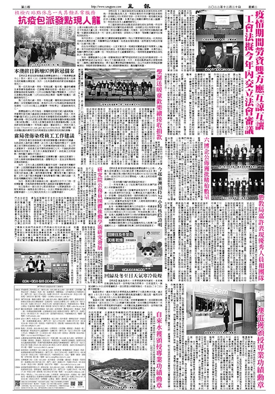 另外,應變協調中心公佈,核酸檢測站於澳門特區政府成立紀念日的服務安排,今日是澳門特區成立紀念日,除以下六個站點休息一天外,其他站點將維持正常開放時間:二龍喉公園核酸檢測站;筷子基北灣休憩區核酸檢測站;台山平民新村休憩區核酸檢測站;勞動節巷核酸檢測站;漁人碼頭核酸檢測站;離島醫院地盤。