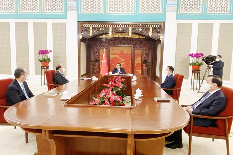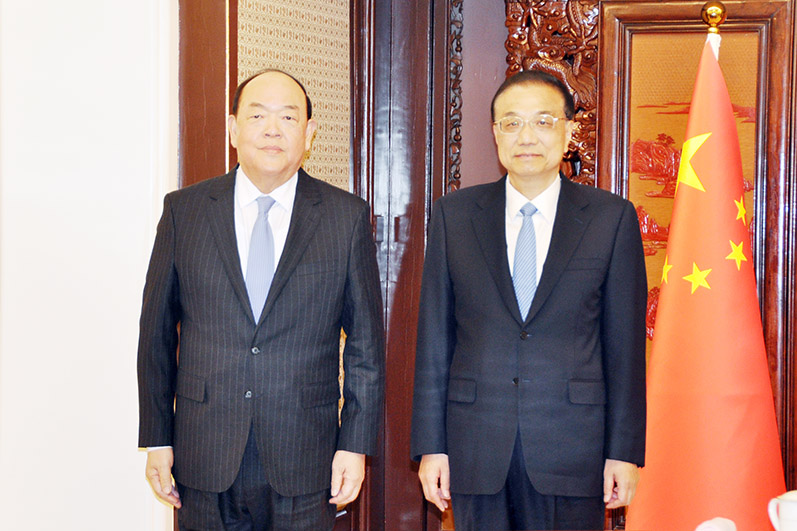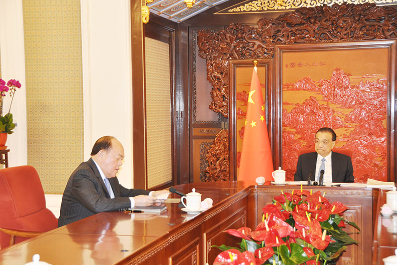 李克強總理在會面時表示,過去一年,行政長官帶領澳門特區政府務實而為,採取了一系列措施穩經濟、保就業、惠民生,維護了澳門的穩定發展的良好局面。中央政府對行政長官和特區政府的工作給予充分肯定。中央政府將繼續全面準確、堅定不移的貫徹“一國兩制”、“澳人治澳”、高度自治方針,完善特別行政區同憲法和基本法實施相關的制度和機制,全力支持行政長官和特區政府依法施政。