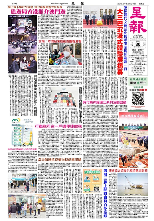 【特訊】旅遊局於昨日(29)日假香港尖沙咀唯港薈,舉行香港及澳門旅遊業界虛擬旅遊暨交流會。隨著澳門優化入境防疫措施,進一步放寬香港入境澳門限制,旅遊局藉活動為香港旅行社更新澳門旅遊資訊,同時為兩地業界提供交流及業務對接機會,以吸引香港人來澳旅遊,提振澳門旅遊經濟。