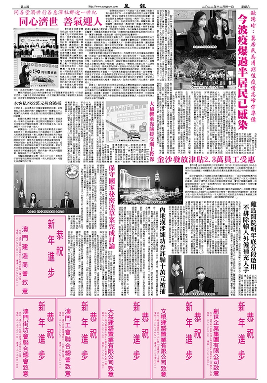 改善民生是特區政府施政重點工作,在做好新冠疫情過渡期救治工作的同時,切實做好各項民生工作,透過優化醫療系統,保障居民生命和健康;確保教育投入,培養興澳人才;持續完善社會保障,擴展服務覆蓋面,紓解民困,提升居民生活質素,增進福祉。善與人同,共襄善舉,期望同善堂同仁繼續支持特區政府的民生工作與公益慈善事業,為不同需要的市民提供適切服務。