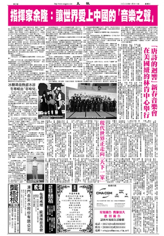 「唐詩的迴響」新春音樂會 在美國紐約林肯中心舉行