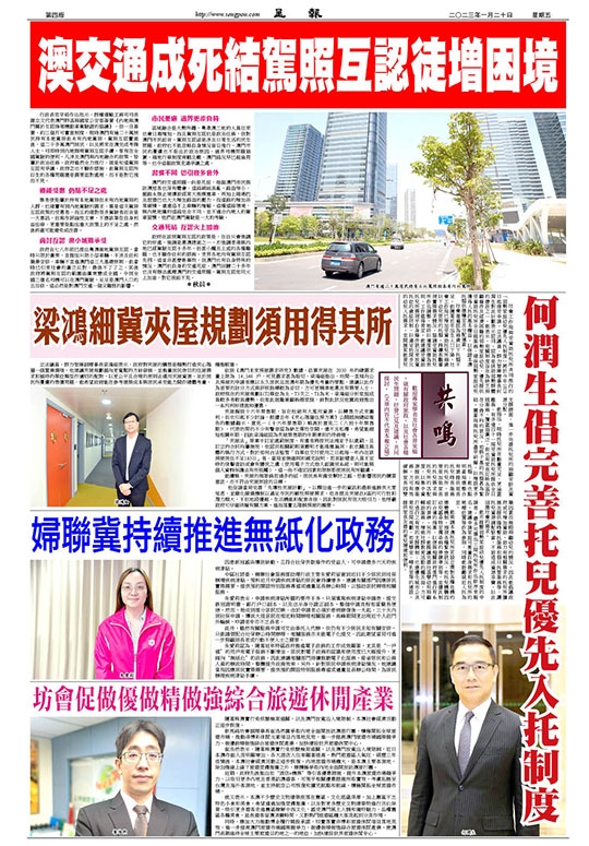 他強調本澳托兒所宜設立應對各種危機的應變機制,預視各種緊急狀況,如托兒機構因幼兒感染特定傳染病的停課準則等,並據此制訂合適的預案,以便與相關政府部門進行有系統的演練。另外,他提議完善社區嬰幼兒照顧輔助服務,增強社群教育活動的觸及面,方可打造行之有效的支援機制;也應優化城市公共育兒空間規劃,如育嬰室、哺乳室等的建設,提供家長友善的育兒環境和便利。
