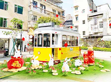 農曆新年期間,“悠氹仔”、“悠路環”及“關前薈”三區的活動牌樓增添了兔年特色新春裝飾,澳門旅遊吉祥物麥麥亦換上賀年服飾與福兔一起在AR互動中向市民及旅客拜年。