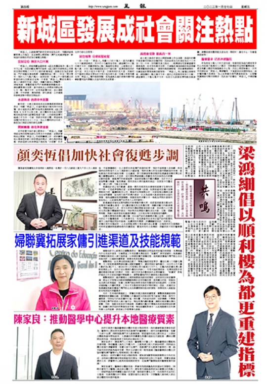 他指出,片區重建有助塑造本澳良好的城市形象,在原有的建築體驗上增加更合符的人性化的設計,更可增設綠化元素,乃至設置住商兩用的天橋連廊串聯裙樓商場、商業步行街等,而且樓宇的限高或有進一步的放寬,這些都須以片區規模為前提的都更計畫方可開展,大幅完善該區的商業配套,營造更理想的商住環境,因此片區重建的效益遠大於單棟重建。他總結片區重建除了能全面規劃整體城市的佈局外,亦能兼顧業主、公眾和社會三位一體的利益,都更若能以此推展,效能將發揮得更佳。