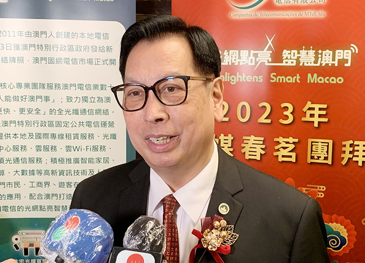 徐德明指出,MTel電信已於去年三月底在北區設立第三門市----望廈門市,同時已開通客戶服務熱線123,現時該熱線已與本澳所有電信服務供應商全面接通。徐德明表示,現時客戶維持約七千多個,期望今年能增至一萬二千至一萬三千個。他並提到,已為覆蓋新城 A區大廈網絡做好準備。
