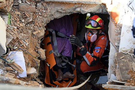 由於當地電力中斷,一些專業的破碎工具無法使用。為保障被困人員的安全,救援人員祗好用錘子、錐子、鏟子等工具靠人力刨出一個救援通道,歷經3個多小時,才救出第一名被困者。