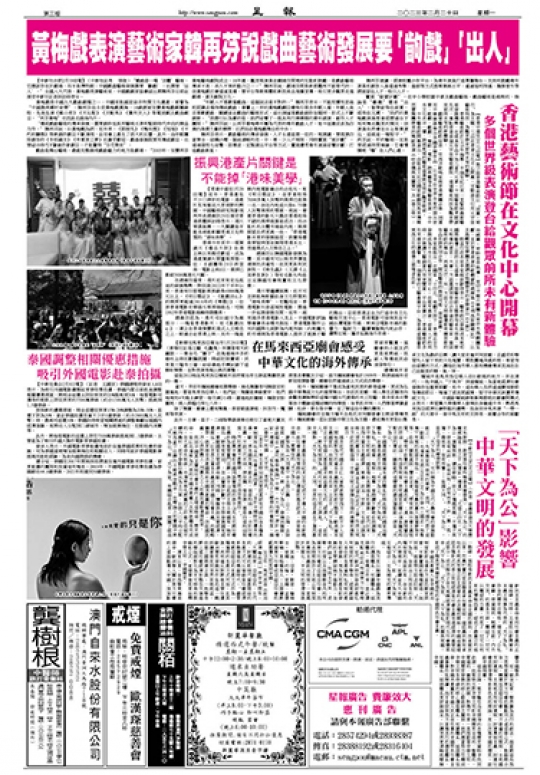 翻看藝術節節目表,從西洋歌唱家與香港樂團合奏,到運用中樂樂器奏出多國音樂作品,以至來自世界各地的頂尖音樂、歌劇、戲劇、舞蹈、電影、跨媒體等多種藝術表演,令中外文化共冶一爐,跨越地域的藝術盛事將呈現於觀眾眼前。