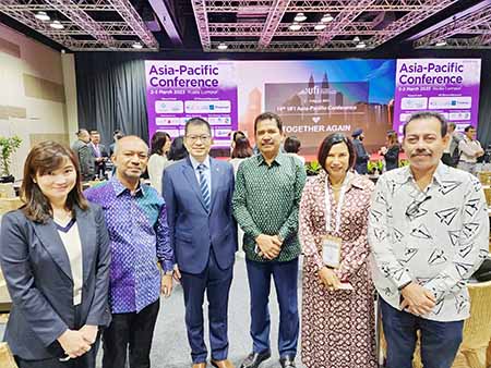 澳門貿易投資促進局代主席余雨生聯同會展業界代表,於3月2至3日出席在馬來西亞吉隆坡舉辦的2023年UFI亞太區會議。期間,余雨生與馬來西亞會展局總裁 Dato’ Sri Dr. Abdul Khani Bin Daud、UFI總裁麥高德、董事總經理及首席執行官賀庭凱等會面,交流及分享澳門會展等資訊。同時,在會議最後環節,UFI代表宣佈2024年UFI亞太區會議將在澳門舉辦。