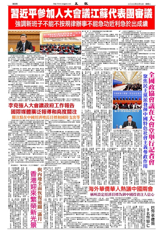 【中新社北京3月5日電】全國政協十四屆一次會議5日下午在人民大會堂舉行記者會。各民主黨派中央和全國工商聯主席在回答記者提問時表示,將以習近平新時代中國特色社會主義思想為指導,深入學習貫徹中共二十大精神,堅持好發展好完善好中國新型政黨制度,繼承和發揚工商聯優良傳統,始終同中國共產黨同心同德、團結奮鬥,為實現全面建成社會主義現代化強國、以中國式現代化全面推進中華民族偉大復興貢獻智慧和力量。