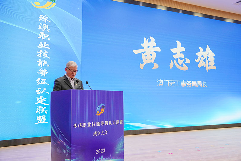 勞工事務局局長黃志雄於致辭時表示“聯盟”將成為珠澳兩地在技能人才培養及評價方面合作及交流的重要平台,期待“聯盟”充份發揮平台作用,培養更多兩地以至灣區發展所需的技能人才。