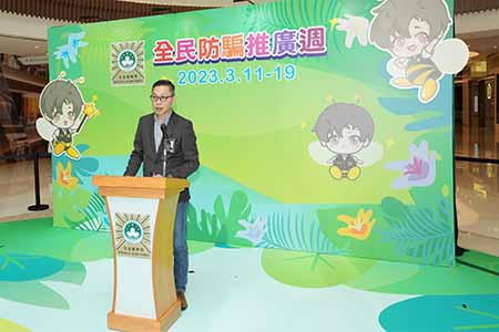 “全民防騙推廣週”活動於3月11日至19日期間在氹仔星皓廣場舉行。啟動儀式於活動首日中午進行,邀得澳門街坊會聯合總會副理事長梁鴻細、澳門工會聯合總會副會長梁偉峰、澳門婦女聯合總會理事長袁小菱、澳門歸僑總會副會長趙文炎、民眾建澳聯盟理事長李良汪、澳門物業管理業商會會長謝思訓、澳門不動產管理專業技術人員協會理事長薛婉娜及澳門物業管理專業人員協會會長周嘉進等嘉賓,聯同司警局局長薛仲明主禮。