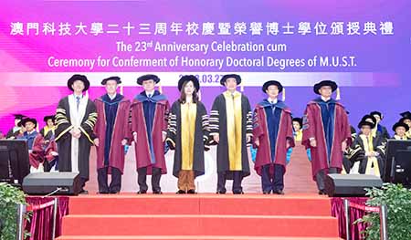 科技大學昨日舉行慶祝廿三周年校慶,並向十四名世界傑出人士頒授二零二二年及二零二三年榮譽博士學位,行政長官代表社會文化司司長歐陽瑜、中聯辦副主任嚴植嬋等出席主持。