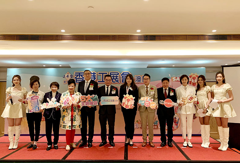 「第五屆香港工展會‧澳門」新聞發佈會昨午舉行,出席嘉賓包括旅遊局旅遊產品及活動廳廳長司徒琳麗、貿易投資促進局會展發展及活動推廣廳代高級經理馮建樹、香港廠商會會長史立德、澳門中華總商會副理事長何佩芬、澳門廠商聯合會副理事長甄瑞權,以及「香港工展會.澳門」推廣大使薛家燕。