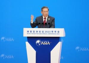 【中新社博鰲3月30日電】(記者 邢翀)中國國務院總理李強3月30日上午在海南博鰲出席博鰲亞洲論壇2023年年會開幕式,並發表題為《以人類命運共同體理念為引領 為世界和平與發展注入更多確定性》的主旨演講。新加坡總理李顯龍、西班牙首相桑切斯、馬來西亞總理安瓦爾、象牙海岸總理阿希、哈薩克斯坦副總理科伊舍巴耶夫、蒙古國副總理兼經濟部長呼日勒巴特爾、國際貨幣基金組織總裁格奧爾基耶娃和來自五大洲50多個國家和地區的1500多位政界、工商界和智庫學者代表參加。