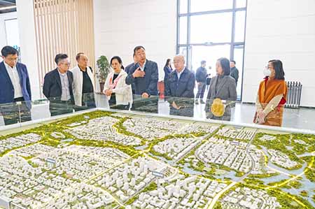 訪京團隨後考察容東片區及南文營社區黨群服務中心,容東片區是新區開發建設的先行區,擔負著首期居民徵遷安置,以及為起步區、啓動區開發建設提供支撐的重要功能。規劃人口十七萬,片區北部為回遷安置區,五點二萬套住宅全部建設完成,進入運營階段,約七點四萬人入住;南文營社區有八個小區,七十三棟住宅樓,目前已入住二千六百餘戶、七千餘人。