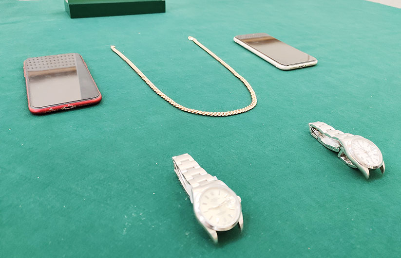 司警表示,案中兩名黎姓男子涉嫌於二零二二年二月至今,懷疑收取內地犯罪集團利益,專門來典當假名表及假金飾,該集團指示二人將贋品以低價典當,取得當票後,將押金及當票交回集團人士,便可獲得三千元報酬,二人由去年至今共作案十宗,均在皇朝區押店典當假名表及金飾,合共收取二萬七千元酬勞。