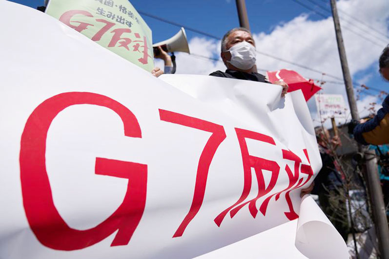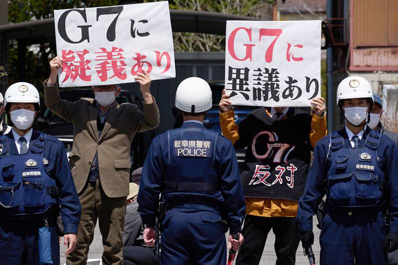 日本民眾來到會場附近抗議七國集團