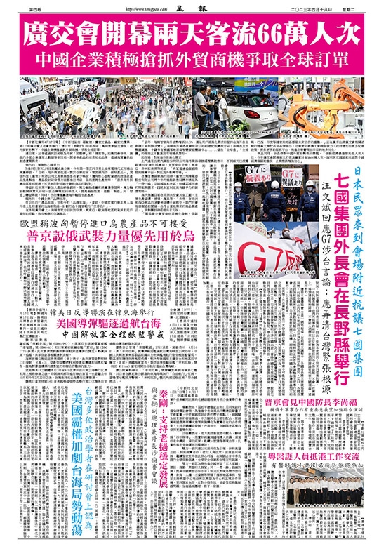 據日本廣播協會(NHK)網站報道,在前兩天議程中,各國外長將主要就烏克蘭局勢、包括中國在內的印太地區以及非洲地區等區域局勢交換意見。18日,各國外長在討論核裁軍和核不擴散等問題後,日本外相林芳正將作為會議輪值主席舉行記者會。法新社消息稱,G7外長聚焦於兩大危機:即所謂的「中國大陸對台灣日益加大的壓力」,以及俄烏戰爭。