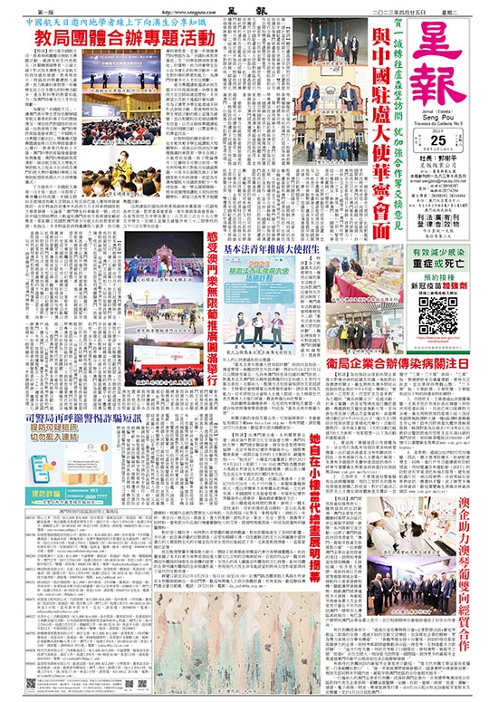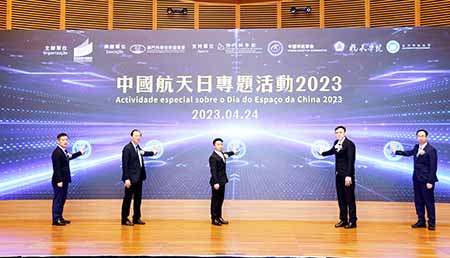為慶祝「中國航天日」,讓澳門青年學生更好地瞭解國家航天事業和科普工作的開展情況,增加他們對國家的使命感,由教青局主辦、澳門科學技術協進會承辦之「中國航天日專題活動2023」開幕儀式暨專題講座昨日在科學館會議中心舉行。教青局代局長丁少雄、澳門科學技術協進會副會長周萬雷、澳門科學館館長邵漢彬、南京航空航天大學航天學院航天工程系主任余萌及澳門科技大學計算機科學與工程學院助理院長蔡占川主持開幕儀式。