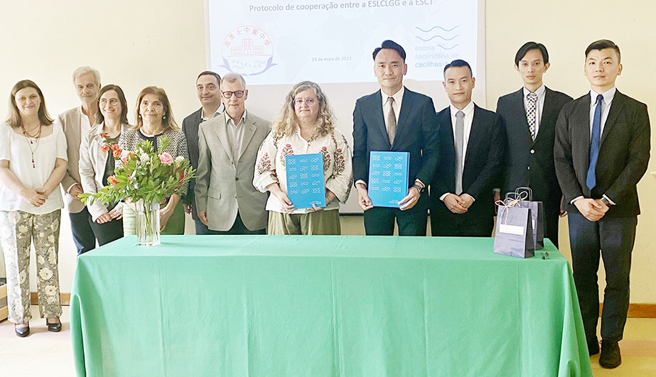 龔志明局長一行到訪位於葡萄牙里斯本市的公立學校Escola Secundária de Cacilhas-Tejo,了解當地非高教公立學校的辦學情況,交流兩地教育政策的特點,並就該校與澳門高美士中葡中學締結姐妹學校關係簽署協議,加強澳葡非高教學校的交流。隨著此次姐妹學校的締結,澳門與葡萄牙非高教學校的姐妹學校增至八對,將為兩地學生帶來更多的學習和生活體驗,促進師生互訪、語言文化交流、遠程教學互動等教學交流活動,有助於增進澳葡學生之間的情誼。