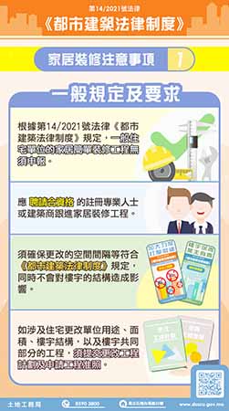 故此,在開展裝修工程前,應透過向工務局申請建築檔案文件(俗稱“底則”),取得有關單位的建築及結構圖等圖則資料,聘請合資格的註冊專業人士或建築商跟進,以了解有關單位可作更改的條件。詳情請瀏覽工務局網頁或諮詢註冊專業人士。