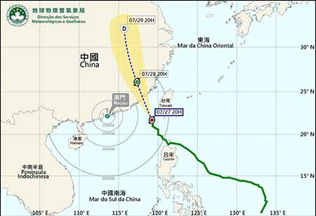 氣象局又指出,受其相關的外圍下沉氣流影響,昨日(二十七日)本澳天氣非常酷熱,部份地區最高氣溫曾上升至攝氏三十八度,中午時份高溫曾觸發零散驟雨,晚間仍有可能出現幾陣雷雨及強烈陣風。其後受到「杜蘇芮」的相關雲帶及西南氣流影響,今日(二十八日)至明日(二十九日)本澳風勢略為增強,間中有驟雨及幾陣雷暴。另外,由於預料「杜蘇芮」今日在本澳以東約五百公里登陸,同時近日並非天文大潮,所以本澳受風暴潮的影響偏低。