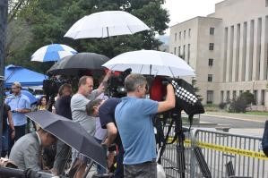 當天下午,特朗普從新澤西州乘飛機抵達華盛頓,之後乘車前往聯邦法院。為“迎接”特朗普的到來,華盛頓明顯加強了安保。中新社記者看到,聯邦法院附近多條道路被封鎖,大樓周圍設置了金屬柵欄,現場大量警員戒備。特朗普的支持者和反對者及大批媒體約數百人聚集在聯邦法院周圍。當天下午3時30分許,特朗普車隊抵達聯邦法院,但他並未露面。他所乘坐的車輛直接駛進聯邦法院。