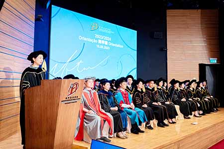 黃竹君勉勵新生要有更大的責任感和使命感,做好自我學習管理,充分利用學院教學資源,積極參與校園活動與培訓計劃,勇於開拓,敢於探索。她期盼學生可以掌握嶄新知識和創新技能與思維,在未來的競爭中脫穎而出,並祝福所有新生在澳門旅遊學院度過美好的校園生活,與學院共同成長。
