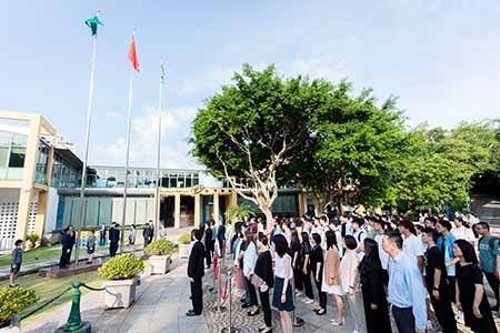 此外,為貫徹愛國愛澳教育,率先讓新生對國情有進一步認識,昨日還舉辦了本學年的首次升國旗儀式及兩場講座,學院邀請到澳門大學法學院憲法與基本法研究中心主任駱偉建主持「認識《憲法》、《基本法》與《維護國家安全法》關係」專題講座。為提高新生防騙意識,在司法警察局協助下,一等刑事偵查員方博先生為學生對有關「網絡犯罪及防詐騙」進行專題講座,讓學生時刻提高警惕,預防墮入網絡犯罪及詐騙陷阱。