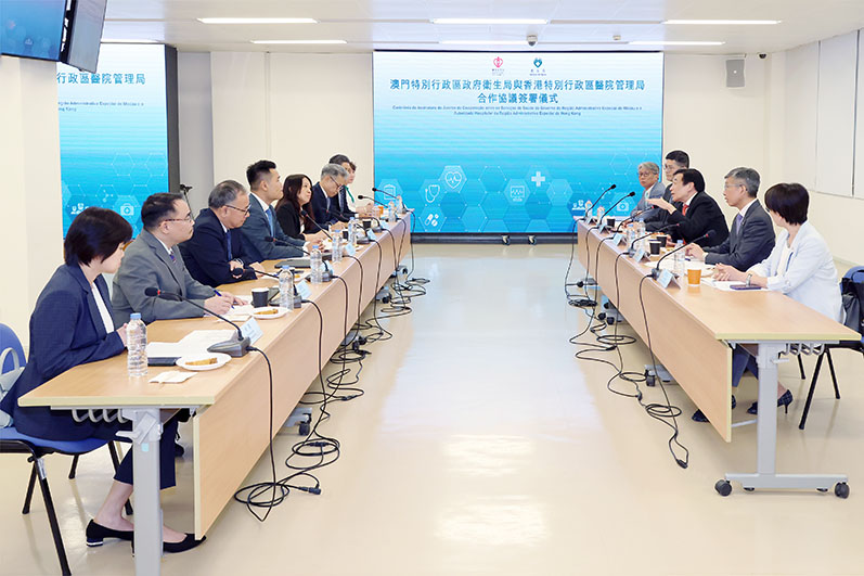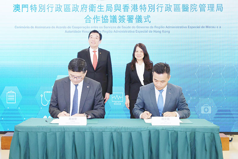 是次續簽合作協議是在社會文化司司長辦公室主任何鈺珊、香港特別行政區醫院管理局主席范鴻齡的共同見證下進行,由衛生局羅奕龍局長、醫院管理局行政總裁高拔陞續簽為期5年(2023-2028年)的《澳門特別行政區政府衛生局與香港特別行政區醫院管理局合作協議》。