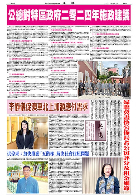 政府早前估算,本澳現有約五至六千名獨居長者及雙老家庭居於唐樓。周惠儀稱,大部分唐樓在樓齡和配套設施方面都相對陳舊和缺乏,對長者生活較為不友善。她認為長者公寓是他們改善居住環境的新選擇,也是特區政府貫徹落實“長者服務十年行動計劃”的體現,值得肯定。婦聯長期關注項目興建進度,曾組織居民參觀示範單位,並提出設24小時緊急服務、分級訂定租金價格等多項建議,推動長者公寓在建設與制度上的不斷優化,亦欣然看到政府採納部分建議,擬透過外判公司為公寓住戶提供全天候的緊急和支援服務。