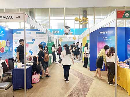此外,訪問團亦到曼谷英漢國際學校舉辦澳門高校升學推廣活動,直接向該校中學生介紹本澳高等教育概況、各校課程特色、報名方式、錄取條件、學費、獎學金等資訊,並即時解答學生的疑問,加深對本澳升學資訊的了解。據介紹,該校提供自幼兒至高中階段教育,現有學生1,100多人,以英語為教學語言,中文及泰文亦是必修課,每年有超過七成高中畢業生到其他國家或地區升學。