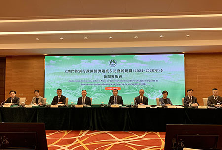 《澳門特別行政區經濟適度多元發展規劃(2024-2028年)》是本澳首個全面系統的產業發展規劃,共設有一百零七項主要任務,二百一十五個重點項目。規劃提出,充分發揮澳門特殊優勢,逐步提升四大產業的比重,不斷增強經濟的發展動能和綜合競爭力,爭取未來非博彩業佔本地生產總值約六成的比重,而非博彩就業人數比重則維持在八成。